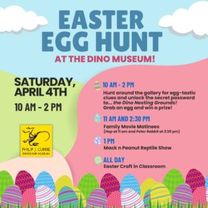 Ages 6+ $15 per person 2 hours Max 20 This Spring Break, bring your kids to the Dinosaur museum for some prehistoric fun! Kids will get to explore fossils from our world-famous bonebed, learn how these dinosaur bones fossilized over 65 million years, and then try their hand at fossil cleaning (just like a palaeontologist)! Time: 2 pm ...