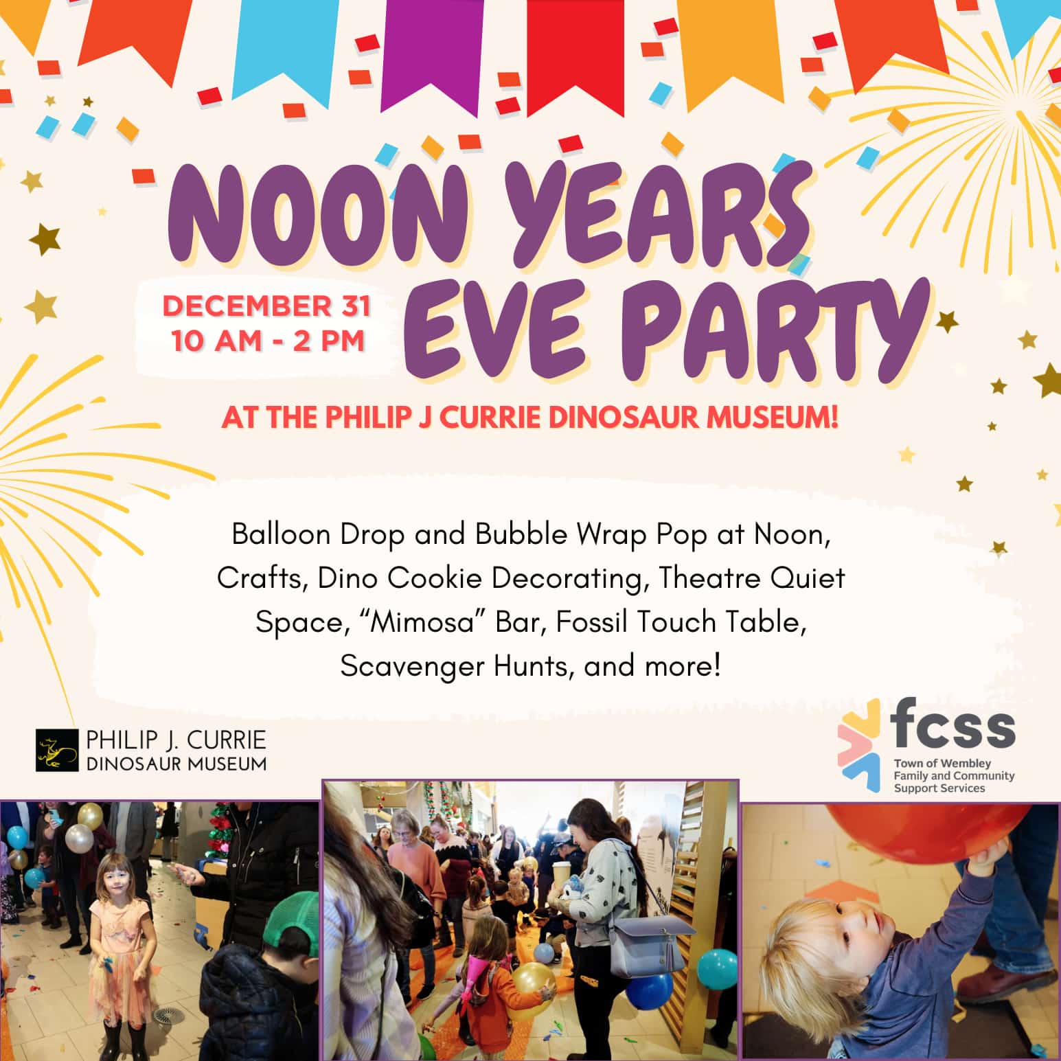 🎈🎉 Get ready to party like its 70 million years ago with The Philip J. Currie Dinosaur Museum this New Years Eve, sponsored by our friends at the Wembley FCSS! 🎉🎈