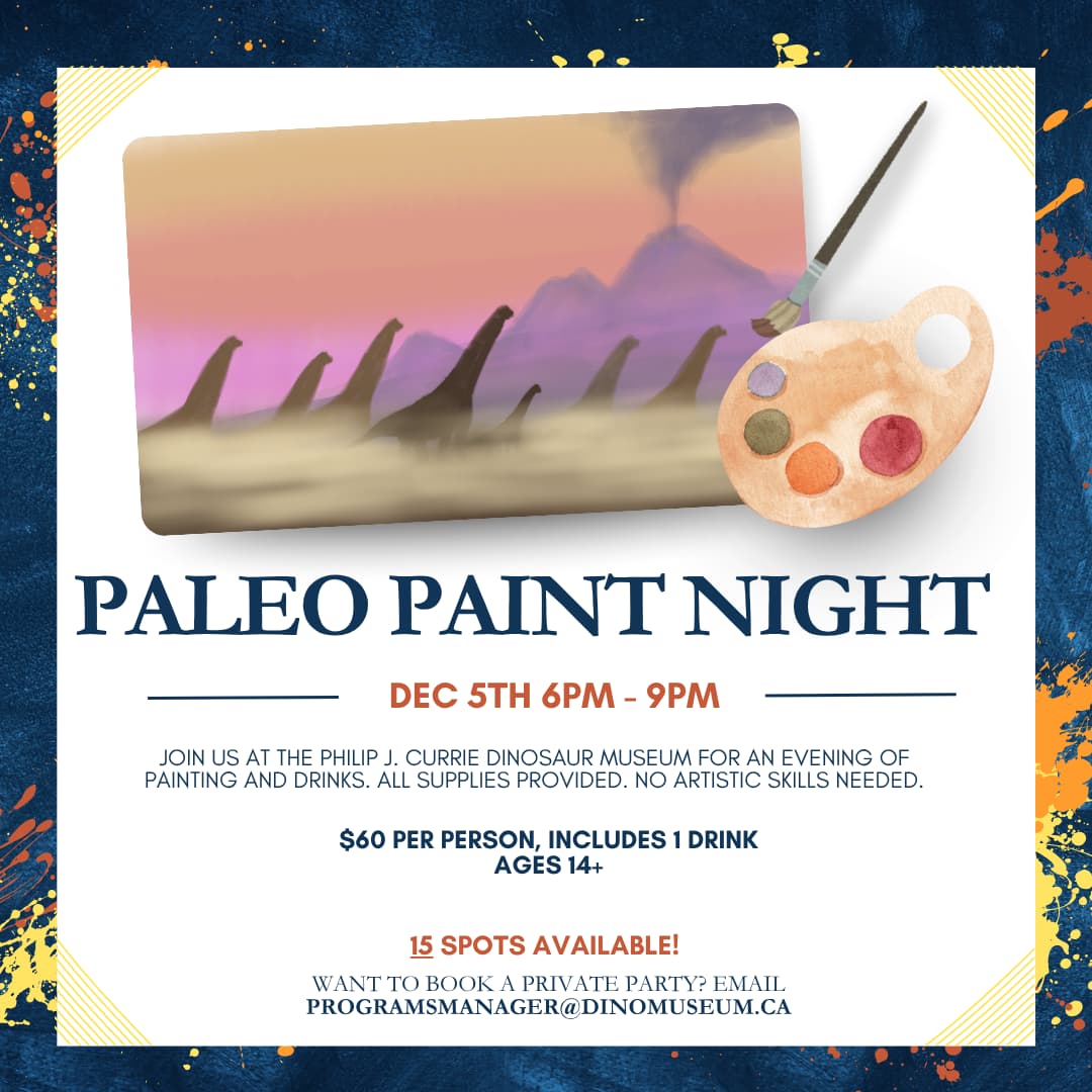 Join for an amazing evening of painting and refreshments! Learn from our in-house paleoartist, Jessy Dion, as he walks you through a palaeo painting from start to finish.